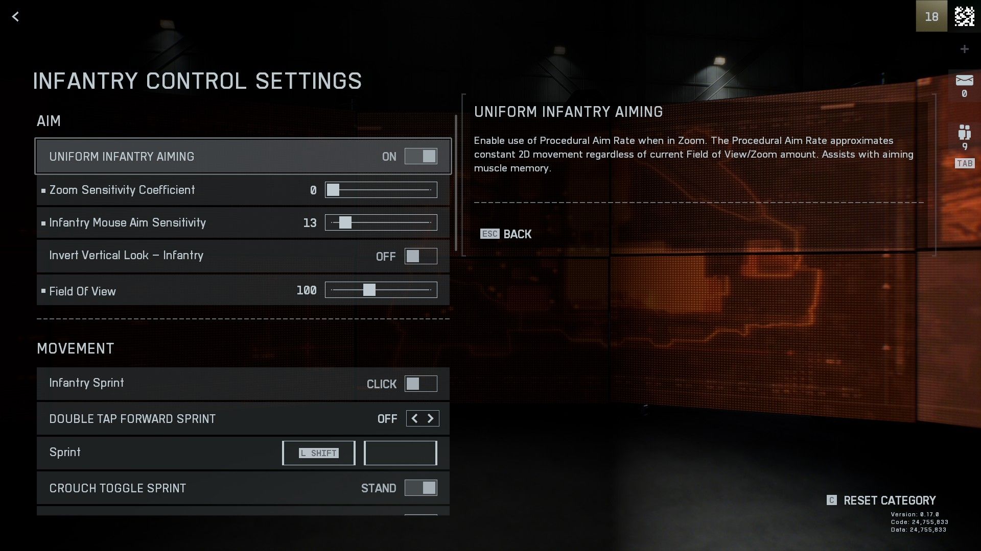 - Uniform Infantry Aiming: This is a crucial setting that can greatly improve your aiming consistency. Set Uniform Infantry Aiming to “On” and adjust the Zoom Sensitivity Coefficient to a value between 133 and 178 for a consistent sensitivity across all scopes.